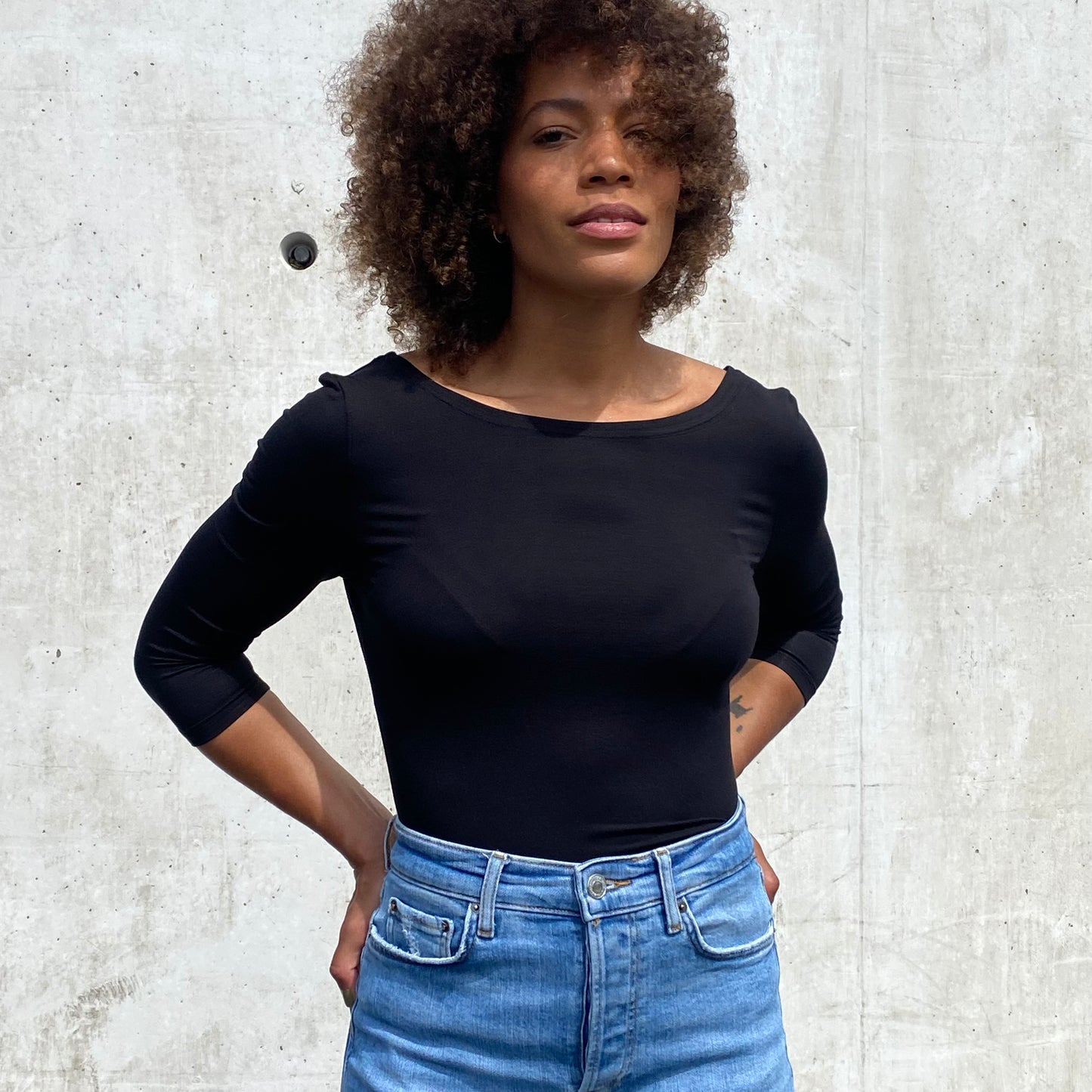 Mit unserem Ballerina-T Kaylin erhältst du ein zeitloses Top, das deinen Stil auf ein neues Level hebt. Der U-Boot-Ausschnitt vorne verleiht einen Hauch von Schick, während der leicht tiefere Rückenausschnitt subtil verführerisch wirkt. Die 3/4-Ärmel bringen die besondere Note. Kaylin wurde mit Bedacht designt, um deine Silhouette zu betonen und gleichzeitig Komfort zu bieten. Es ist mehr als nur ein Kleidungsstück - es ist dein Teil für unendlich viele Looks.